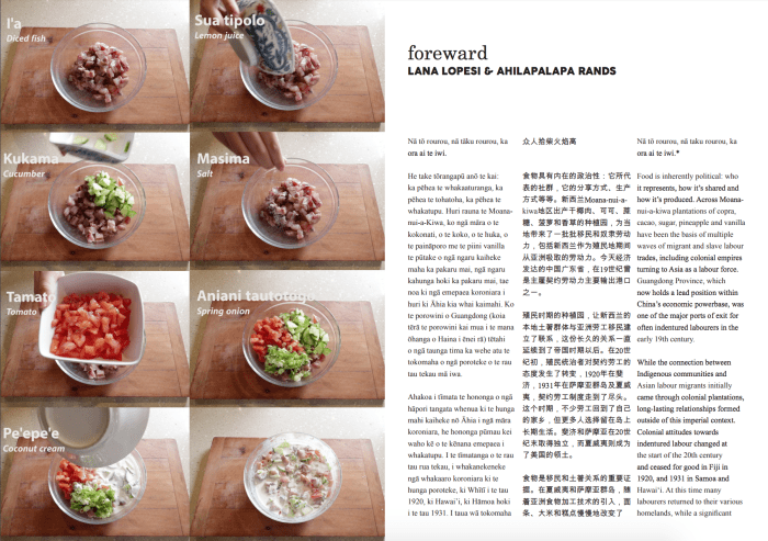 Food is one signifier of these migrant and Indigenous relationships. In both Hawaiʻi and Samoa staple diets changed through the introduction of new Asian foods such as noodles, rice and pastry as well as the processes to prepare them. Foods such as sapasui, keke pua’a and musubi borrow from new food technologies, becoming local delicacies. Moreover, these highlight the power indigenous people have to adopt and adapt new foods into their diets, a sovereignty which doesn’t always exist in colonised lands across this vast ocean.